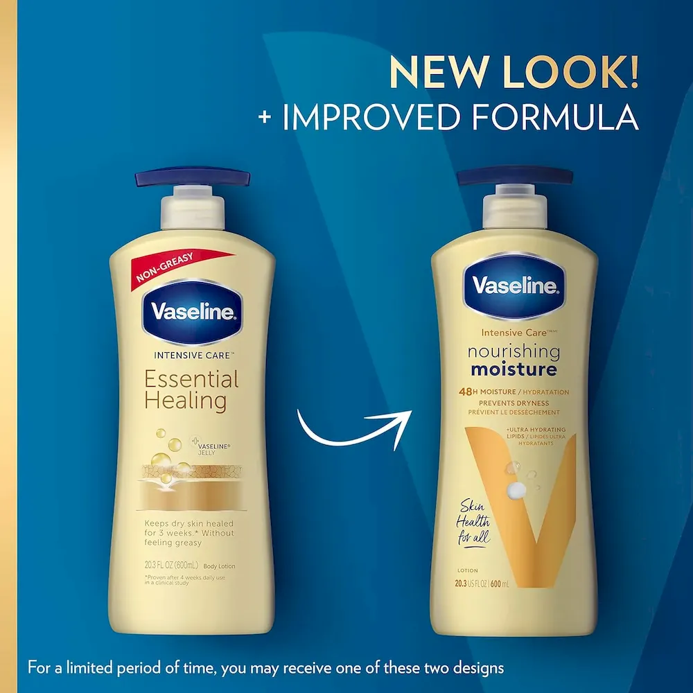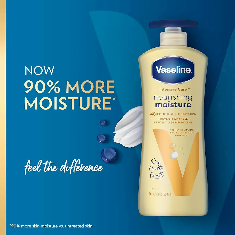 - FOR NOURISHED. HEALTHY SKIN: Vaseline Intensive Care Nourishing Moisture Lotion locks in moisture and deeply nourishes for healthy-looking skin