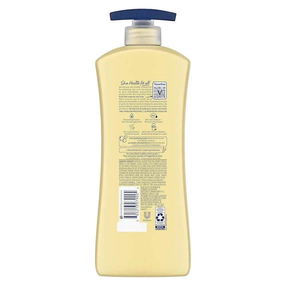 Vaseline Intensive Care Nourishing Moisture Lotion. with Ultra-Hydrating Lipids and Pure Oat Extract. moisturises and nourishes for healthy-looking skin. This body moisturizer is tested to provide 90% more moisture (vs. untreated skin).