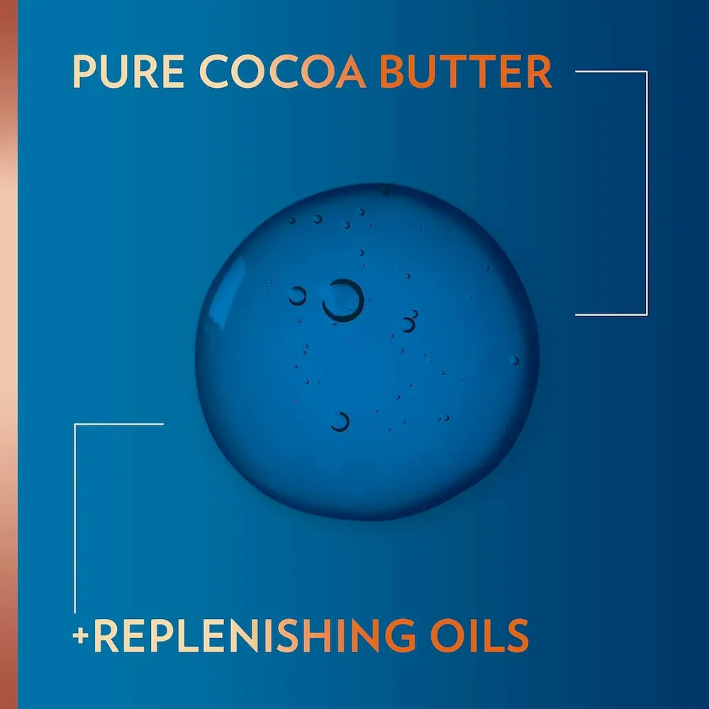 - FEEL THE HYDRATING RELIEF: Our vitalizing body oil skin moisturizer formula infused with 100% Pure Cocoa Butter and Replenishing Oils. locks in moisture to promote a smooth. natural glow