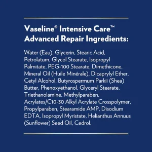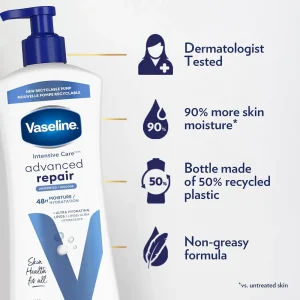 - REPAIRS EXTREMELY DRY SKIN: Vaseline Intensive Care Advanced Repair Unscented Body Lotion locks in moisture and repairs extremely dry skin