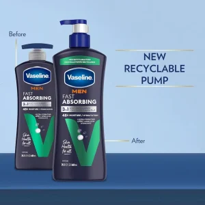 - NON-GREASY FEEL: Vaseline Men Healing Moisture lotion absorbs into your skin in 15 seconds to provide immediate moisturization without making your skin feel greasy