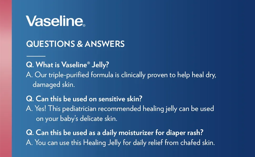Vaseline Healing Jelly Original is clinically proven to help heal dry. damaged skin. This Healing Jelly is made with our triple-purified formula to protect skin and lock in moisture.