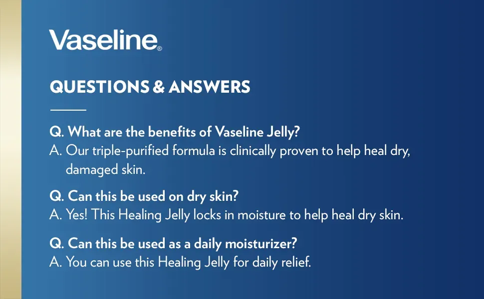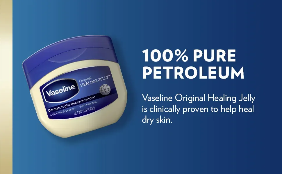 Vaseline Healing Jelly Original is clinically proven to help heal dry. damaged skin. This Healing Jelly is made with our triple-purified formula to protect skin and lock in moisture .